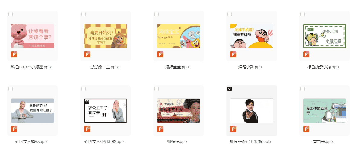 小红书PPT模板16套:外国女人张伟甄嬛传猫和老鼠等精品搞怪ppt模版 203.2MB